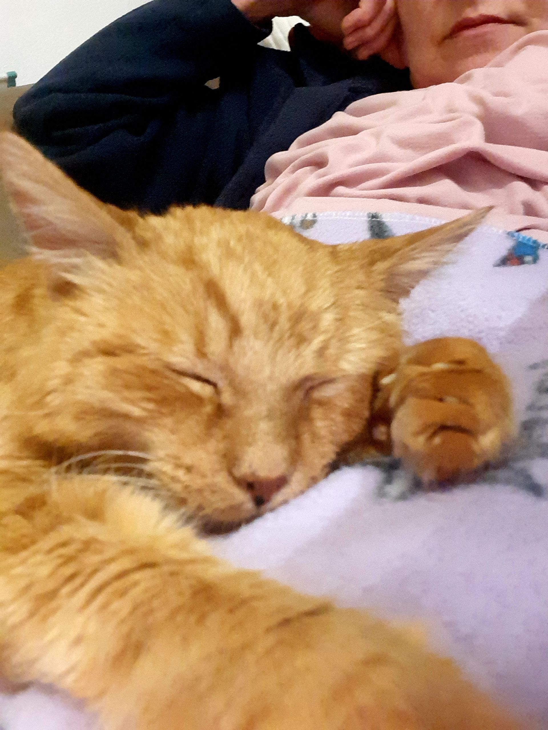 Inzwischen habe ich das Gefühl, dass Pedro gar nicht so alt ist, wie vermutet. Er hat einen gesunden Appetit, leider nur bei Hühnchen und Lachs und ein bisschen Trockenfutter, aber immerhin. Sein schlechter Ernährungszustand zusätzlich zu seiner Krankheit haben ihn wohl so geschwächt, dass er für uralt gehalten wurde. Er ist jetzt auch nicht mehr so unsicher auf den Beinen.