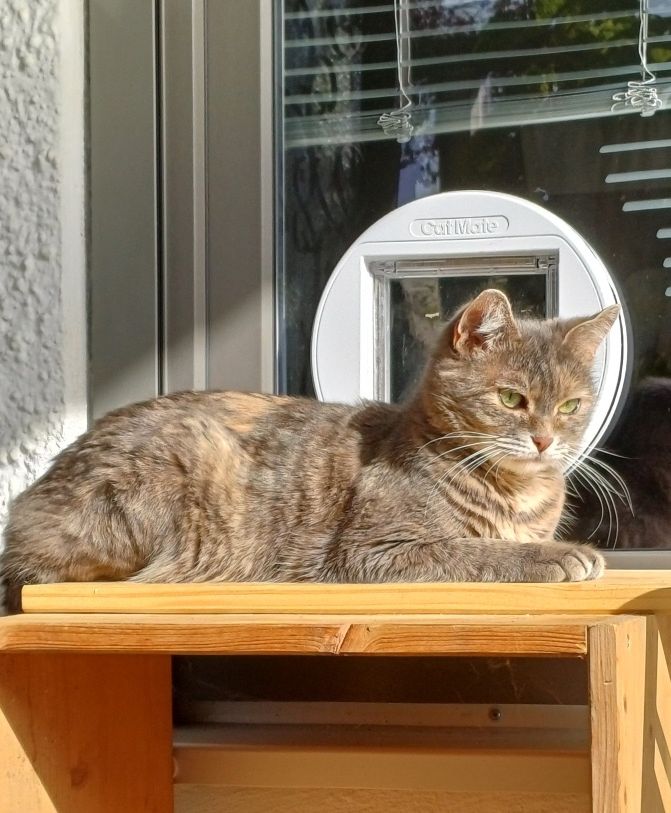 Sobald meine Besucher in ihrem Zimmer waren, kam sie zum schmusen und spielen. Sie hat unsere Besucher auch in Augenschein genommen und die waren begeistert, dass sie Juna sehen und mit ihr zumindest auf Abstand in Kontakt treten konnten.